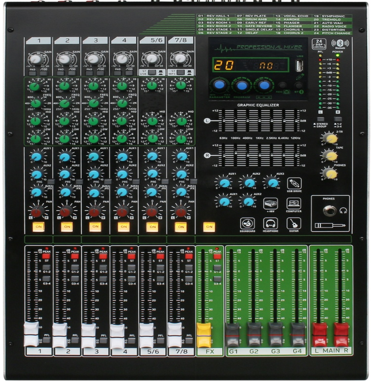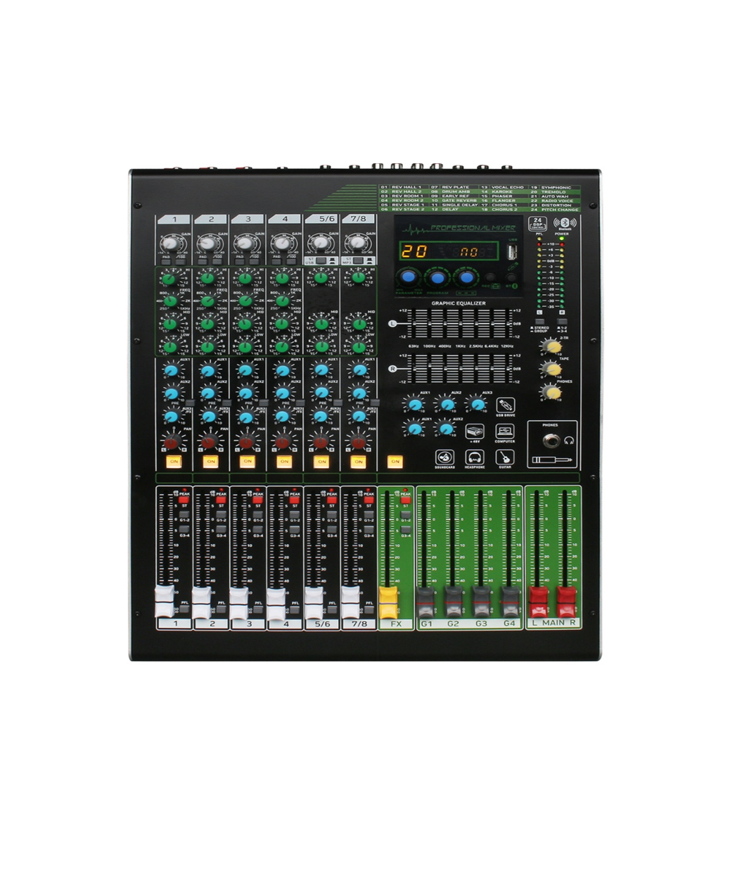 Thiết kế 8 kênh, micro mono 4 kênh + đầu vào âm thanh nổi 2 kênh